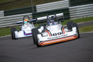 The first Championship race of the weekend was initially lead by the Reynard SF77 of Ben Glasswell before a broken suspension component forced his retirement leaving Graham Fennymore to take the victory ahead of Michael Moyers driving another of Adrian Reynard’s SF79. Michael Moyers had made a great start, leapfrogging Andrew Storer’s SF79 and then passing Callum Grant on the outside. Callum, driving Ian Pearson’s SF79, kept hold of third, despite the best efforts of Benn Simms, who had progressed rapidly up the order from tenth on the grid.