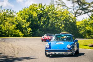 70s Road Sports opened the event after lunch on Saturday, the 25 car grid flooding the circuit with a kaleidoscope of colour. With damp conditions from the early morning qualifying session jumbling the grid, competitors constantly re-arranged themselves into ever changing patterns as the Porsche 911 of John Williams made it’s escape from pole position, completing the first lap with a 7sec advantage.